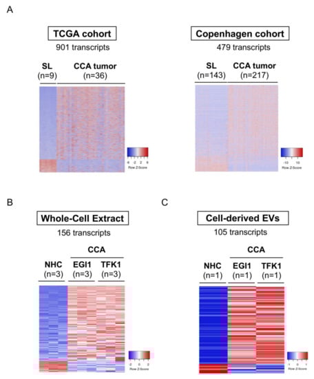 The following are available online at https://www.mdpi.com/2073-4409/9/3/721/s1, Figure S1: Differential transcriptomic profile and diagnostic efficacy of serum EV transcripts; Figure S2: Characterization of cholangiocyte-derived EVs transcriptome. Figure S3: Comparative analysis of the levels of candidate serum liquid biopsy transcripts with CCA disease severity in the Copenhagen and TCGA cohorts; Figure S4: Differential transcriptomic profile and diagnostic efficacy of urine EV transcripts; Figure S5: Comparative analysis of the levels of candidate urine liquid biopsy transcripts with CCA disease severity in the Copenhagen and TCGA cohorts; Table S1: Clinical information of the individuals; Table S2: Number of transcripts identified in each experimental group.