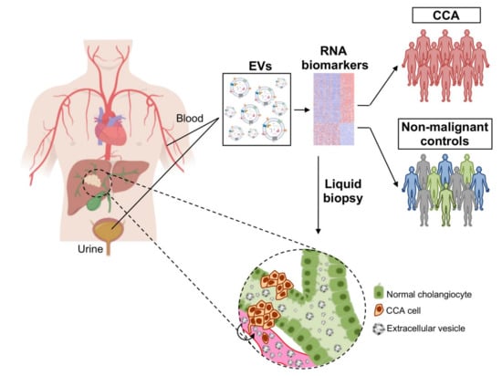 - Li, L.; Masica, D.; Ishida, M.; Tomuleasa, C.; Umegaki, S.; Kalloo, A.N.; Georgiades, C.; Singh, V.K.; Khashab, M.; Amateau, S.; et al. Human bile contains microRNA-laden extracellular vesicles that can be used for cholangiocarcinoma diagnosis. Hepatology 2014, 60, 896–907. [Google Scholar] [CrossRef] [PubMed]