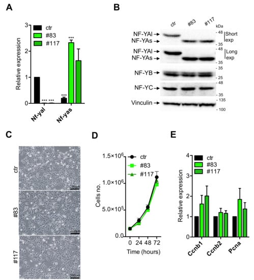 - Dolfini, D.; Minuzzo, M.; Pavesi, G.; Mantovani, R. The Short Isoform of NF-YA Belongs to the Embryonic Stem Cell Transcription Factor Circuitry. STEM CELLS 2012, 30, 2450–2459. [Google Scholar] [CrossRef] [PubMed]
