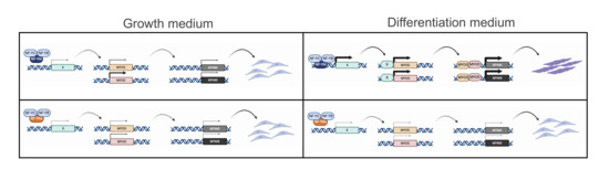 - Buckingham, M.; Rigby, P.W. Gene Regulatory Networks and Transcriptional Mechanisms that Control Myogenesis. Dev. Cell 2014, 28, 225–238. [Google Scholar] [CrossRef]
