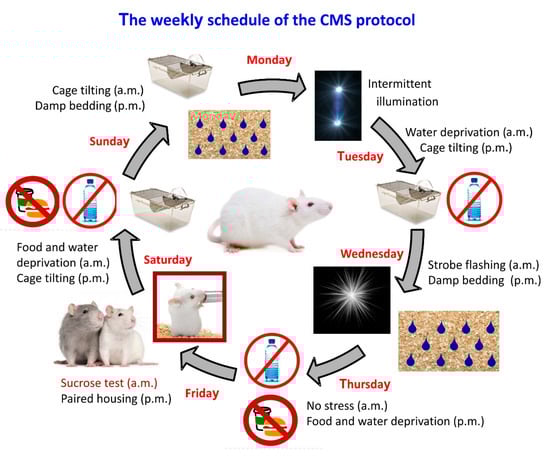- Willner, P. The chronic mild stress (CMS) model of depression: History, evaluation and usage. Neurobiol. Stress 2017, 6, 78–93. [Google Scholar] [CrossRef] [PubMed]