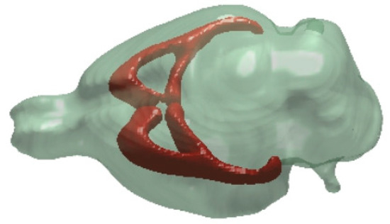 A representative 3D image showing the main commissural white matter pathways (brown) of the rat brain.