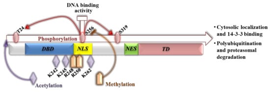 2.1. Post-Translational Modifications of FoxO Affecting Nucleocytoplasmic Trafficking