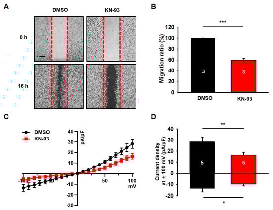 3.1. KN-93, a Selective CaMKII Blocker, Reduces Migration and Chloride Currents in U251 Cells