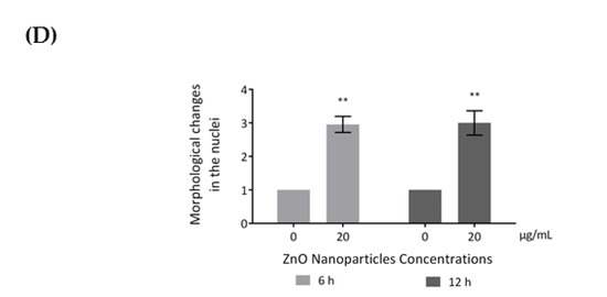3.3. Evaluation of Cell Damage Induced by ZnO NPs