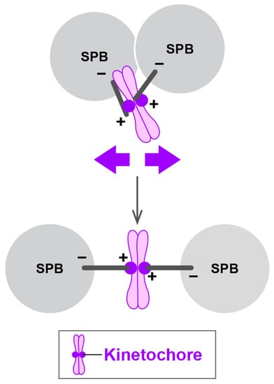 - Shirasugi, Y.; Sato, M. Kinetochore-mediated outward force promotes spindle pole separation in fission yeast. Mol. Biol. Cell 2019, 30, 2802–2813. [Google Scholar] [CrossRef]