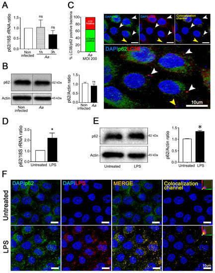 3.3. A. Actinomycetemcomitans Induces Selective Autophagy Mediated by p62/SQSTM1