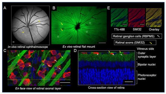 - Balendra, S.I.; Normando, E.M.; Bloom, P.A.; Cordeiro, M.F. Advances in retinal ganglion cell imaging. Eye 2015, 29, 1260–1269. [Google Scholar] [CrossRef]