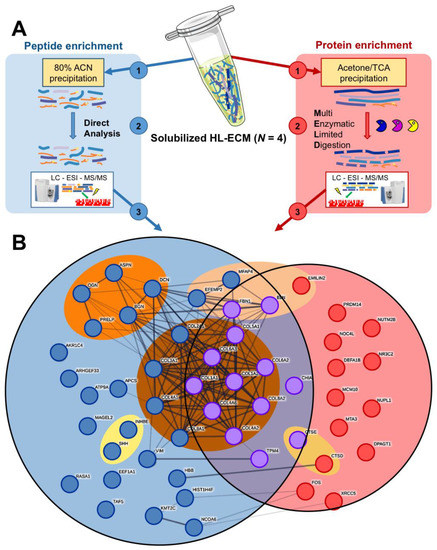 3.2. Proteomic and Peptidomic Characterization of Solubilized HL-ECM