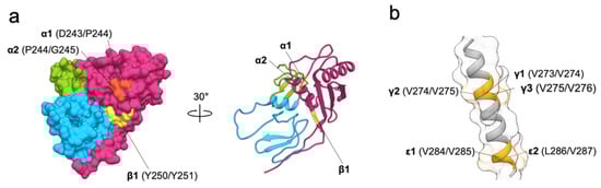 Structural details of RIP cleavages. (a) TACE (⍺1, ⍺2, orange) and BACE (β1, yellow) cleavage sites on EpEX shown in two different orientations. (b) γ-secretase (γ1–γ3 and ε1, ε2; light orange) cleavage sites in EpCAM transmembrane region.