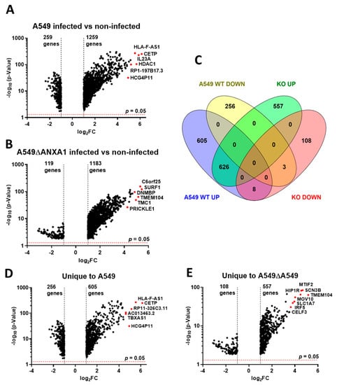Transcript Expression Profiling in Influenza Virus-Infected A549 Parental and ∆ANXA1 Cells