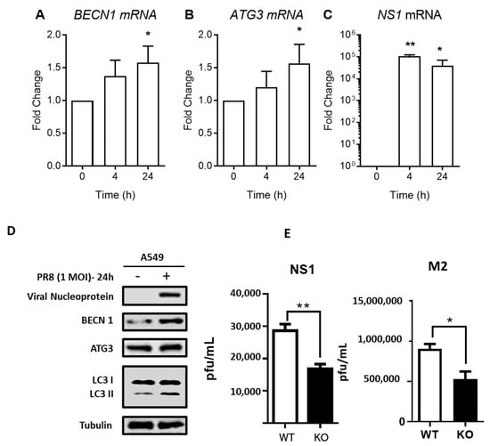 3.3. IAV Enhances Autophagy through Regulation of Autophagic Proteins