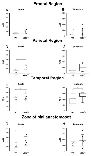 3.4. Effects of VDR Deficiency on the Intracranial Collateral Circulation