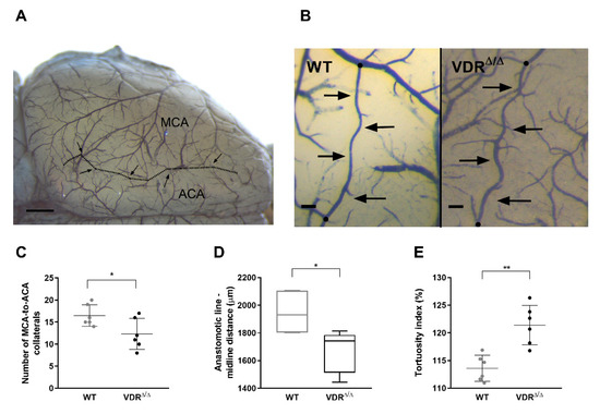 3.3. Effects of VDR Deficiency on the Extracranial Collateral Circulation