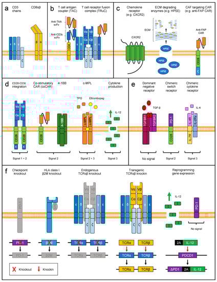 - Li, D.; Li, X.; Zhou, W.L.; Huang, Y.; Liang, X.; Jiang, L.; Yang, X.; Sun, J.; Li, Z.; Han, W.D.; et al. Genetically engineered T cells for cancer immunotherapy. Signal Transduct. Target. Ther. 2019, 4, 35. [Google Scholar] [CrossRef]