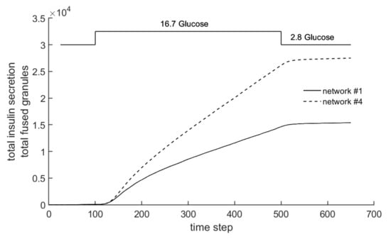 - This network is also compatible with a simulated interaction between glucose- and potassium-stimulated secretion, which mirrors earlier experimental observations [].