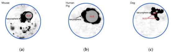 The morphology of a heterochromatin mass (karyosphere) in SN or SN-related oocytes is distinct in different mammals. The differences mainly concern the karyosphere compactness and NLB size (Figure 2).