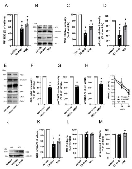 3.1. Effect of CK2 Inhibition on NG2 Expression