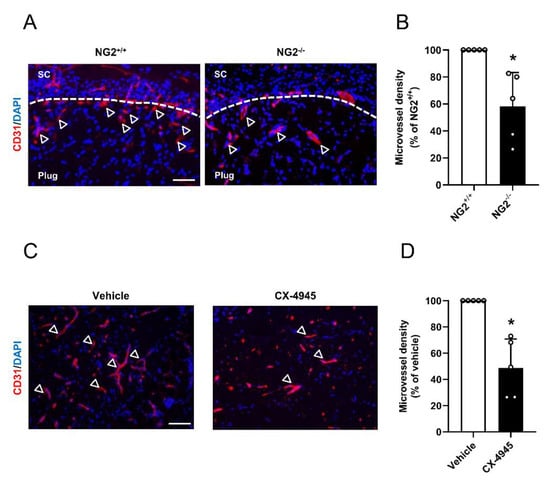 - Huang, F.-J.; You, W.-K.; Bonaldo, P.; Seyfried, T.N.; Pasquale, E.B.; Stallcup, W.B. Pericyte deficiencies lead to aberrant tumor vascularizaton in the brain of the NG2 null mouse. Dev. Boil. 2010, 344, 1035–1046. [Google Scholar] [CrossRef]