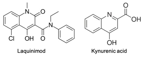 - Majlath, Z.; Annus, A.; Vecsei, L. Kynurenine System and Multiple Sclerosis, Pathomechanism and Drug Targets with an Emphasis on Laquinimod. Curr. Drug Targ. 2018, 19, 805–814. [Google Scholar] [CrossRef]