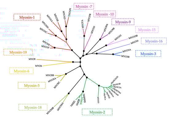 - Berg, J.S.; Powell, B.C.; Cheney, R.E. A millennial myosin census. Mol. Biol. Cell 2001, 12, 780–794. [Google Scholar] [CrossRef]
