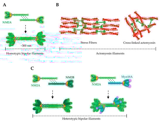 - Shutova, M.S.; Spessott, W.A.; Giraudo, C.G.; Svitkina, T. Endogenous species of mammalian nonmuscle myosin IIA and IIB include activated monomers and heteropolymers. Curr. Biol. 2014, 24, 1958–1968. [Google Scholar] [CrossRef] [PubMed]