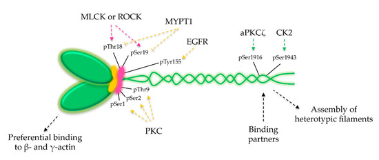 - Komatsu, S.; Ikebe, M. The phosphorylation of myosin II at the Ser1 and Ser2 is critical for normal platelet-derived growth factor induced reorganization of myosin filaments. Mol. Biol. Cell 2007, 18, 5081–5090. [Google Scholar] [CrossRef] [PubMed]