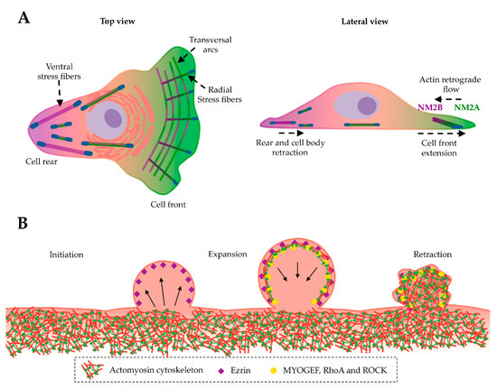 - Taneja, N.; Burnette, D.T. Myosin IIA drives membrane bleb retraction. Mol. Biol. Cell 2019, 30, 1051–1059. [Google Scholar] [CrossRef] [PubMed]