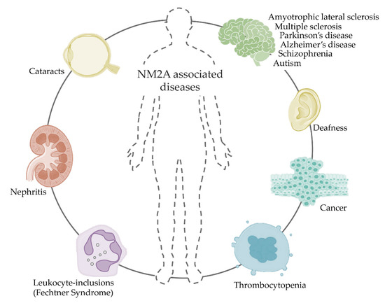 - Pecci, A.; Ma, X.; Savoia, A.; Adelstein, R.S. MYH9: Structure, functions and role of non-muscle myosin IIA in human disease. Gene 2018, 664, 152–167. [Google Scholar] [CrossRef]