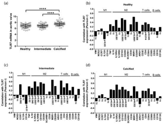 3.1. TLR7 mRNA Is Expressed in Human Aortic Valves and Correlates with M2 Macrophage Markers