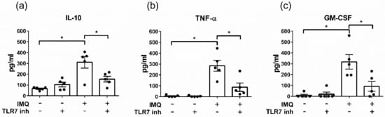 3.3. The TLR7 Agonist Imiquimod Alters Ex Vivo Cytokine Secretion from Human Aortic Valves