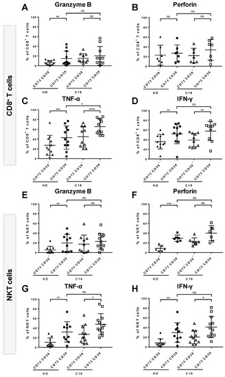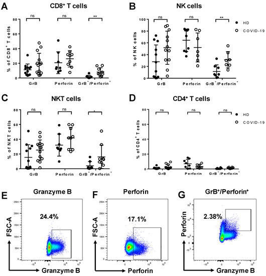 3.2. Increased Expression of Granzyme B and Perforin by Cytotoxic Lymphocytes from COVID-19 Patients