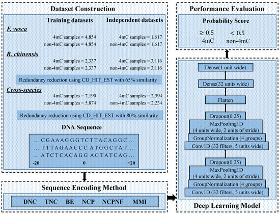 - Zeng, F.; Fang, G.; Yao, L. A deep neural network for identifying DNA N4-methylcytosine sites. Front. Genet. 2020, 11, 209. [Google Scholar] [CrossRef]