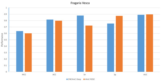 Grapical illustration of performance comparison between DNC4mC-Deep and state-of-the-art model on the independent Fragaria Vesca dataset.