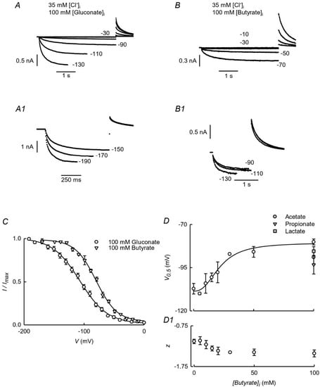 - Niemeyer, M.I.; Cid, L.P.; Zúñiga, L.; Catalán, M.; Sepúlveda, F.V. A conserved pore-lining glutamate as a voltage- and chloride-dependent gate in the ClC-2 chloride channel. J. Physiol. 2003, 553, 873–879. [Google Scholar] [CrossRef] [PubMed]