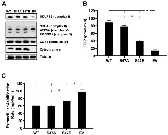 3.2. S47E Cytc Expression Results in Lower Mitochondrial Respiration and Higher Glycolysis Rates