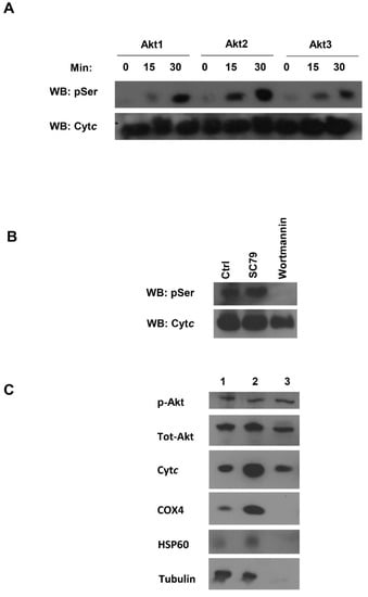 3.6. Akt Is a Potential Kinase Mediating S47 Phosphorylation of Cytc