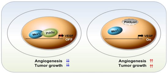 The following are available online at https://www.mdpi.com/2073-4409/9/8/1854/s1, Figure S1: Identification of upstream and downstream signaling pathways involved in angiogenesis inhibition by Msx1 and PIASy, Figure S2: Msx1 protein can interact with VEGFR-2 but not with VEGFR-1, Figure S3: Msx1 suppressed in vivo tumor angiogenesis.