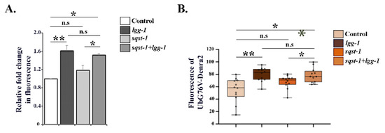 3.3. Downregulation of lgg-1 Affects UPS Function Independently of p62/SQST-1 Accumulation