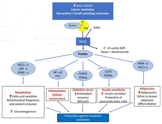- Wang, Y.; Xu, C.; Liang, Y.; Vanhoutte, P.M. SIRT1 in metabolic syndrome: Where to target matters. Pharmacol. Ther. 2012, 136, 305–318. [Google Scholar] [CrossRef] [PubMed]