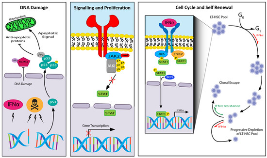 - Essers, M.A.; Offner, S.; Blanco-Bose, W.E.; Waibler, Z.; Kalinke, U.; Duchosal, M.A.; Trumpp, A. IFNalpha activates dormant haematopoietic stem cells in vivo. Nature 2009, 458, 904–908. [Google Scholar] [CrossRef] [PubMed]