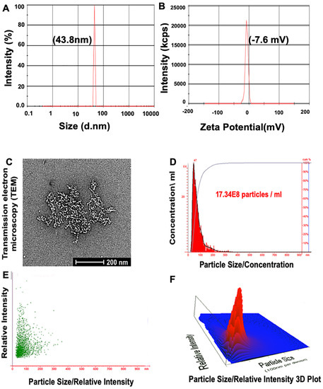 - Dragovic, R.A.; Gardiner, C.; Brooks, A.S.; Tannetta, D.S.; Ferguson, D.J.; Hole, P.; Carr, B.; Redman, C.W.; Harris, A.L.; Dobson, P.J.; et al. Sizing and phenotyping of cellular vesicles using Nanoparticle Tracking Analysis. Nanomedicine 2011, 7, 780–788. [Google Scholar] [CrossRef] [PubMed]