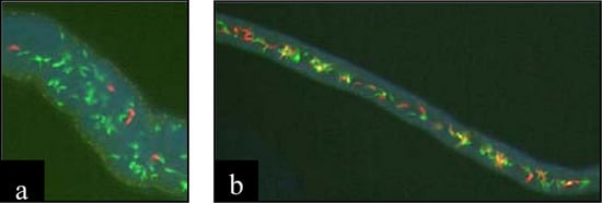 - Hoerauf, A.; Nissen-Pahle, K.; Schmetz, C.; Henkle-Duhrsen, K.; Blaxter, M.L.; Büttner, D.W.; Gallin, M.Y.; Al-Qaoud, K.M.; Lucius, R.; Fleischer, B. Tetracycline therapy targets intracellular bacteria in the filarial nematode Litomosoides sigmodontis and results in filarial infertility. J. Clin. Invest. 1999, 103, 11–17. [Google Scholar] [CrossRef] [PubMed]