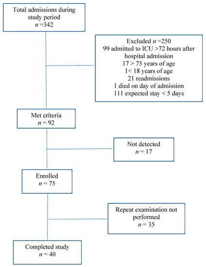 This prospective, observational study was performed in the 14-bed, general intensive care department of the Rabin Medical Center, Campus Beilinson and was approved by the local ethics committee review board, which waived the need for consent. The study was performed over the period of October 2017 until March 2018. Patients who met the following criteria were included in the study: recent hospital admission (i.e., <72 h previously), a medical condition requiring ICU admission and a predicted length of ICU stay ≥5 days. Patients were excluded if their age was <18 or >75 years and if they were pregnant or in the immediate postpartum period.