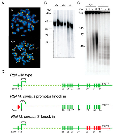 - Ding, H.; Schertzer, M.; Wu, X.; Gertsenstein, M.; Selig, S.; Kammori, M.; Tam, P.P. Regulation of murine telomere length by Rtel: An essential gene encoding a helicase-like protein. Cell 2004, 117, 873–886. [Google Scholar] [CrossRef]