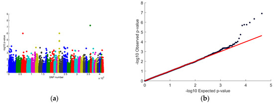 - Purcell, S.; Neale, B.; Todd-Brown, K.; Thomas, L.; Ferreira, M.A.; Bender, D.; Maller, J.; Sklar, P.; De Bakker, P.I.; Daly, M.J.; et al. PLINK, a tool set for whole-genome association and population-based linkage analyses. Am. J. Hum. Genet. 2007, 81, 559–575. [Google Scholar] [CrossRef]