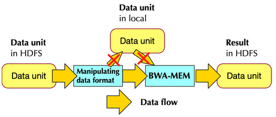 In order to deal with it, the data designed from HDFS would directly be feed to BWA-MEM, which is similar to BWASpark (GATK).