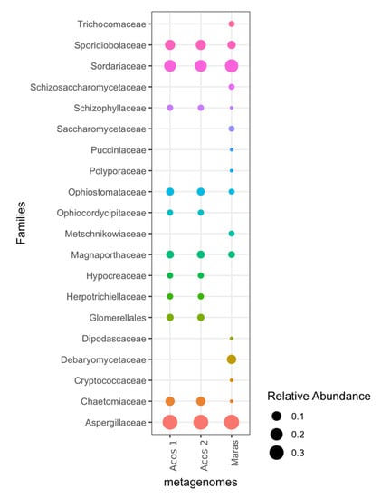Diversity taxonomy of fungi. The Aspergillaceae family was the most abundant in Acos and Maras.