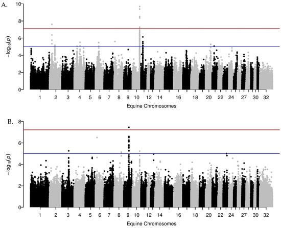 Norton, E.; Schultz, N.; Geor, R.; McFarlane, D.; Mickelson, J.; McCue, M. Genome-Wide Association Analyses of Equine Metabolic Syndrome Phenotypes in Welsh Ponies and Morgan Horses. Genes 2019, 10, 893. https://doi.org/10.3390/genes10110893