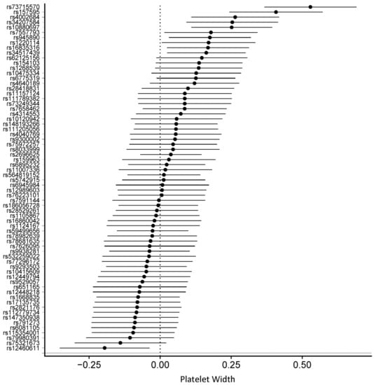 Forest plot of physical activity single nucleotide polymorphisms on platelet width.